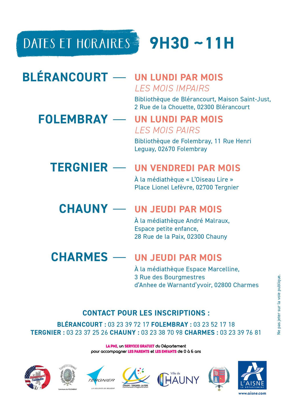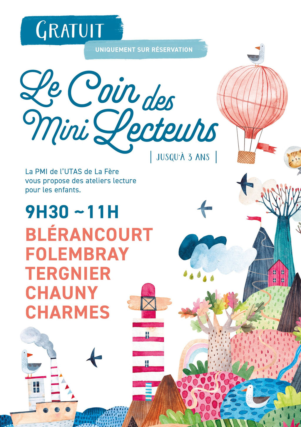 La PMI de L'UTAS de la Fère propose l'atelier "Le Coin des Mini Lecteurs", destiné aux enfants jusqu'à 3 ans, un lundi par mois, de 9h30 à 11h00.
